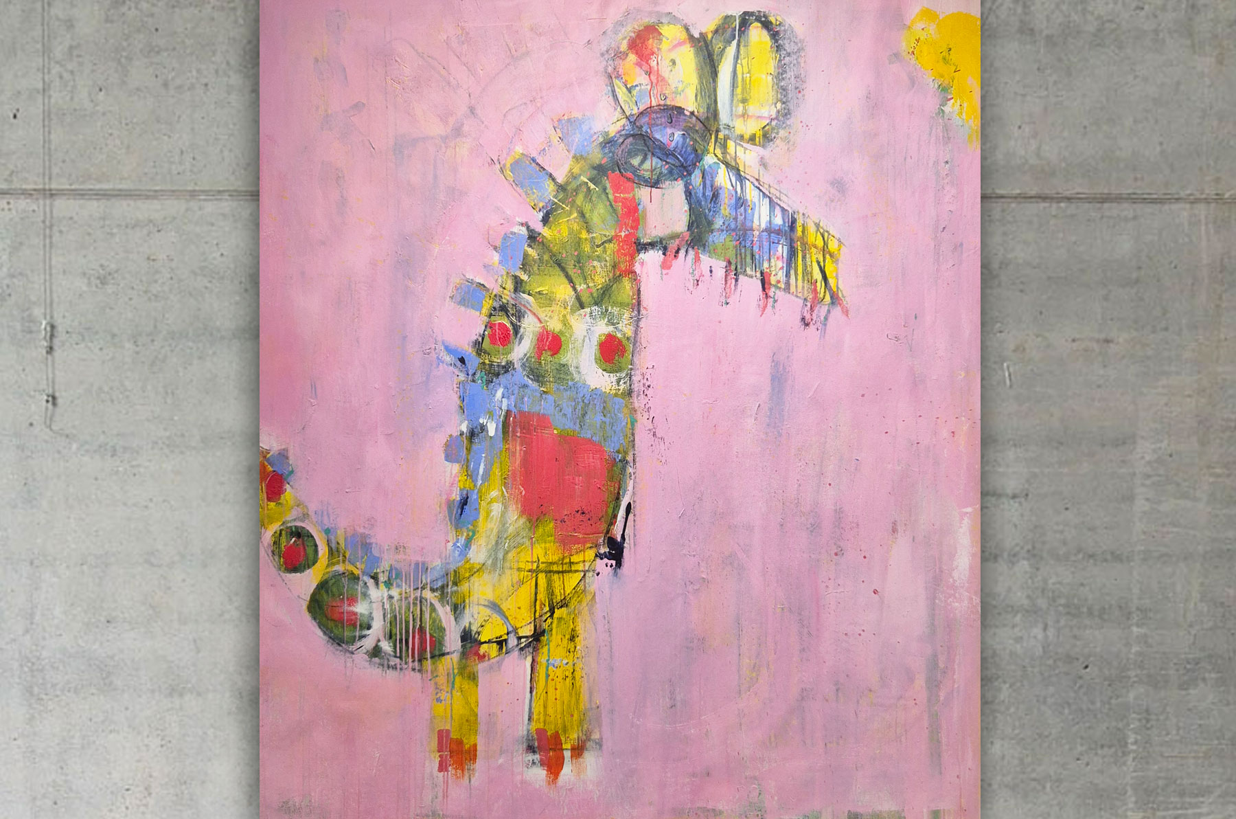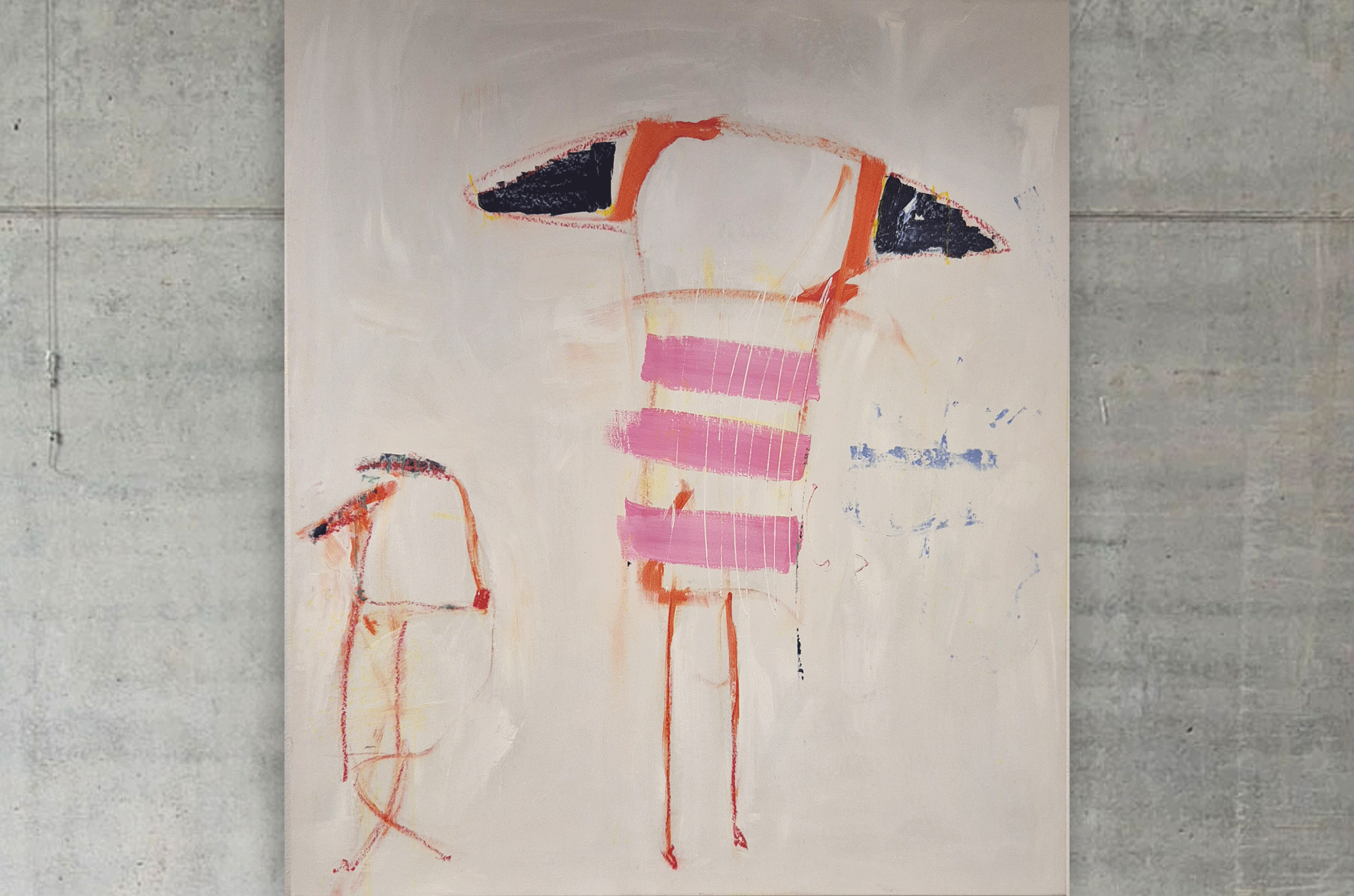 Acrylic, oil pastel on canvas. 240x160 cm